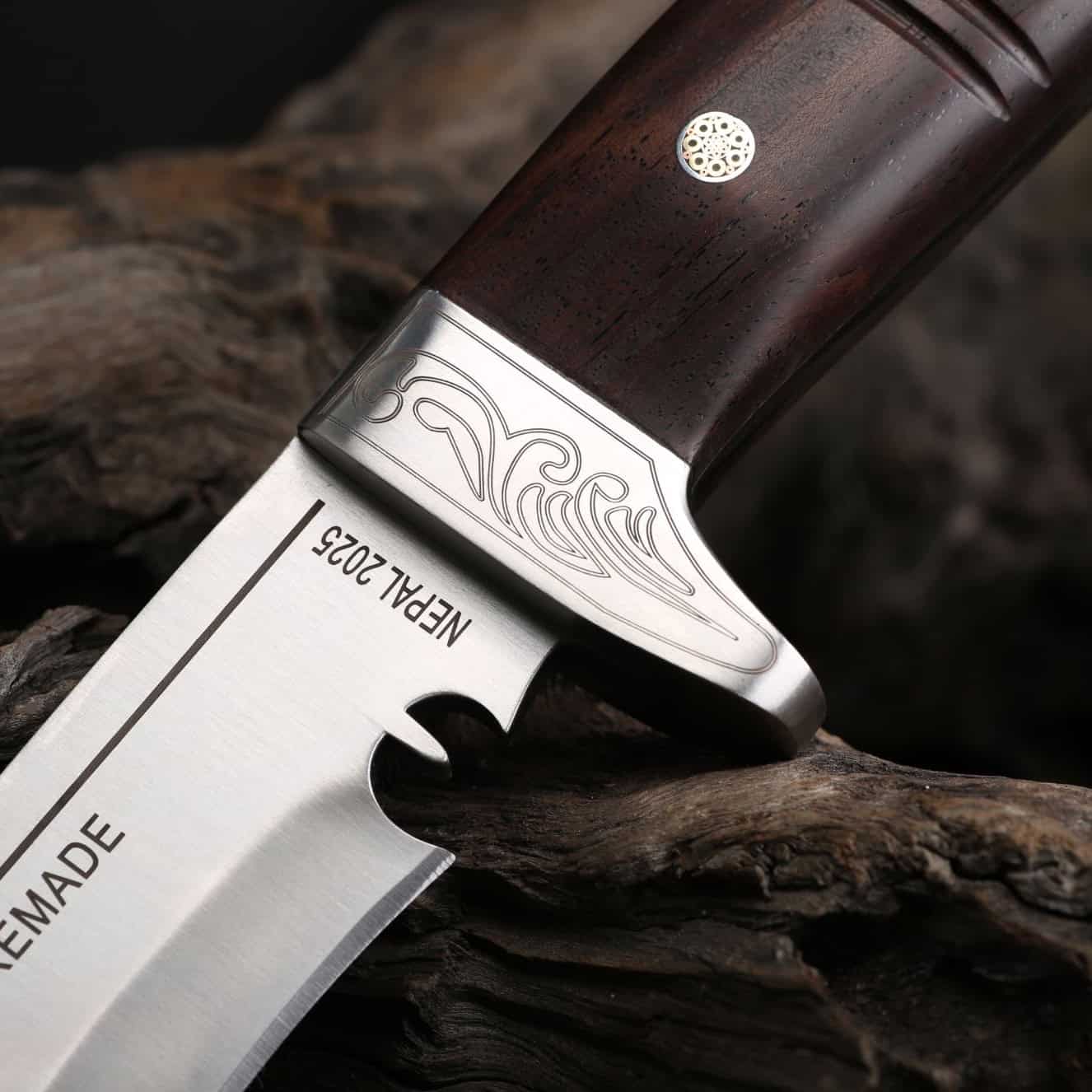 Custom Leather Sheath: Includes a custom-designed, thick genuine leather sheath. The sheath enhances the knife’s presentation and provides a distinguished solution for both display and storage.